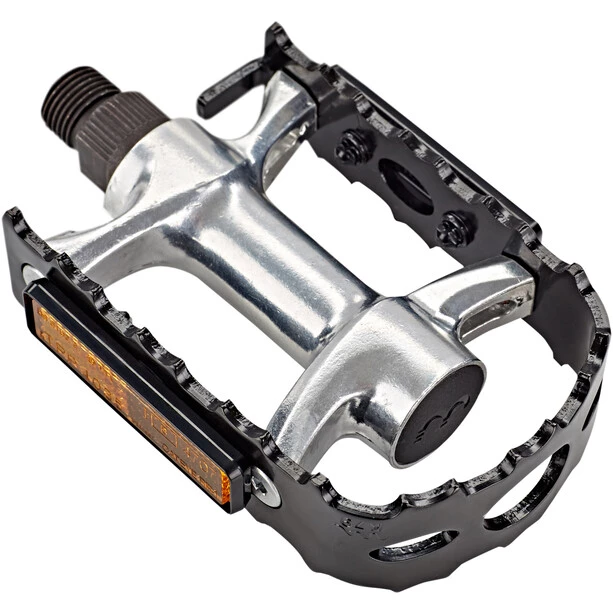 Le BBB BigFeet est une pédale en aluminium super solide et très résistante. Le corps en aluminium forgé à froid est très solide et pourtant léger. La cage C3 garantit que vos pieds disposent d’une grande surface de repos. La pédale a une surface avec un motif spécial qui donne à vos pieds une prise sûre sur la surface pour une adhérence maximale. Et enfin, il y a des réflecteurs des deux côtés de la pédale pour s’assurer que d’autres personnes vous verront sur votre vélo dans l’obscurité.
