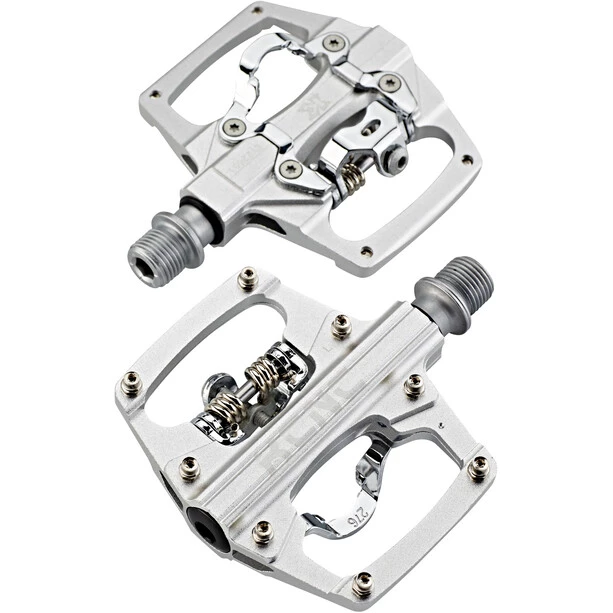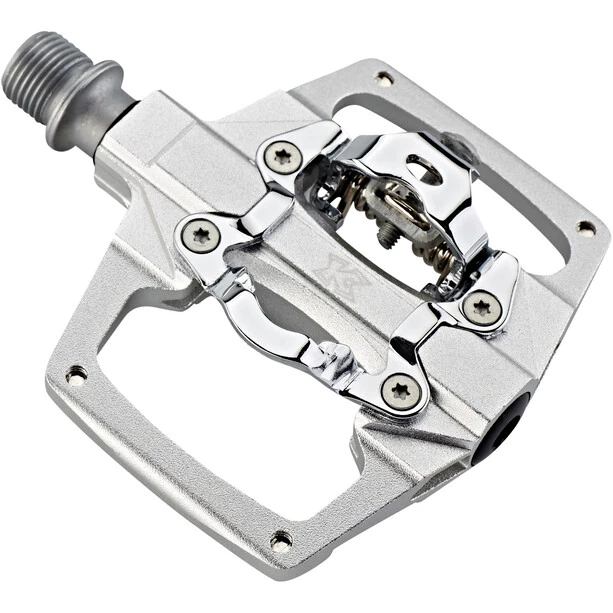 Pédale légère, noble et robuste compatible avec Shimano SPD. Le corps de la pédale est en aluminium CNC 6061. L’axe et les fixations constituées de CroMo. Les 8 goupilles interchangeables du côté de la plate-forme assurent une meilleure stabilité, même sur les pistes les plus sauvages.