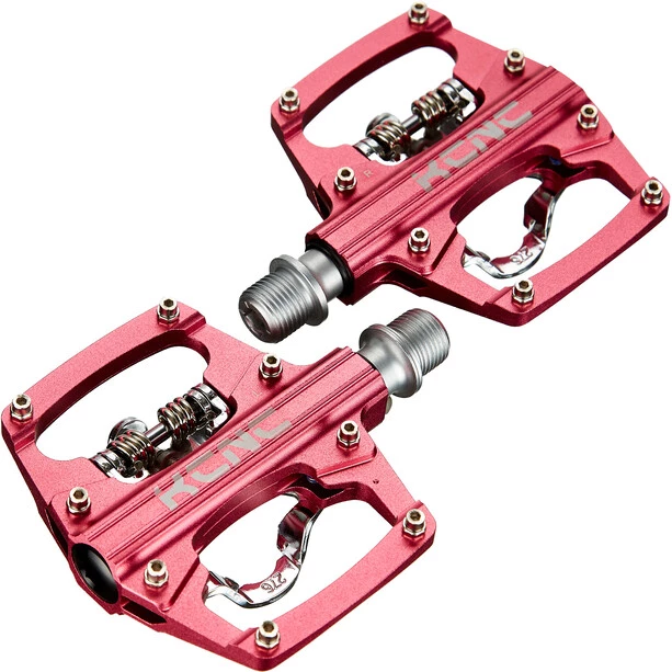 Pédale légère, noble et robuste compatible avec Shimano SPD. Le corps de la pédale est en aluminium CNC 6061. L’axe et les fixations constituées de CroMo. Les 8 goupilles interchangeables du côté du quai donnent la meilleure stabilité même sur les pistes les plus sauvages….