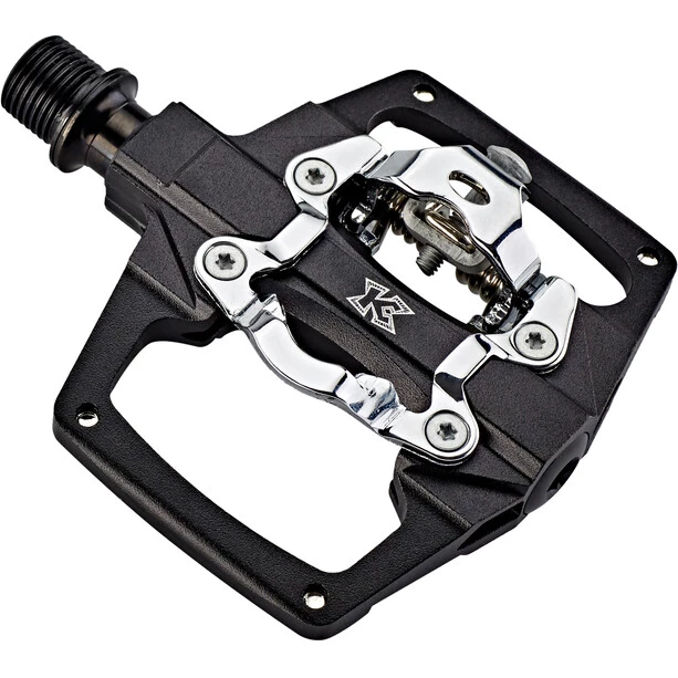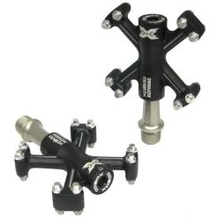Pédale légère, noble et robuste compatible avec Shimano SPD. Le corps de la pédale est en aluminium CNC 6061. L’axe est en titane léger. Les 8 goupilles interchangeables du côté de la plate-forme offrent la meilleure stabilité même sur les pistes les plus exigeantes.