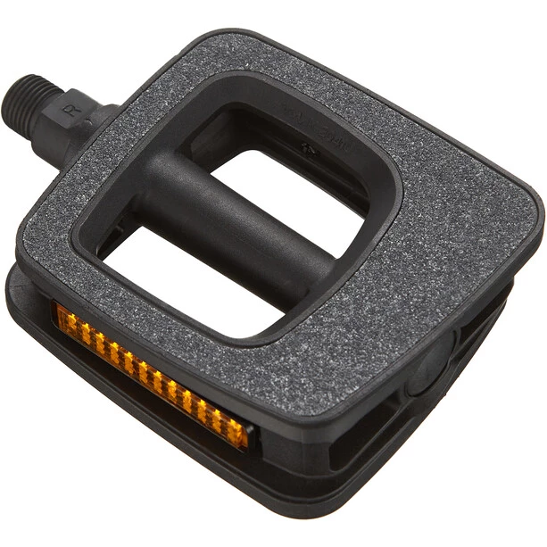 Pédale de ville et de trekking moderne avec palier lisse en polymère nouvellement développé. Le robuste palier en polymère offre un fonctionnement souple et peu usant, il est autolubrifiant et ne nécessite aucun entretien. Corps en plastique profilé avec zone de préhension intégrée pour une meilleure tenue ainsi que des réflecteurs intégrés.