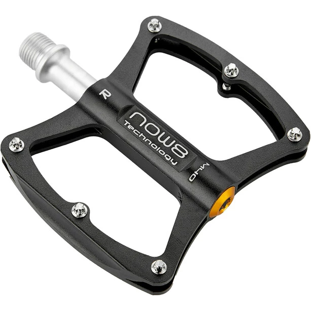 Les nouvelles pédales de plate-forme M40 de NOW8, malgré leur axe CroMo, sont très légères avec seulement 282 par paire. La pédale est équipée de 6 goupilles de chaque côté et a un marquage gauche/droite.