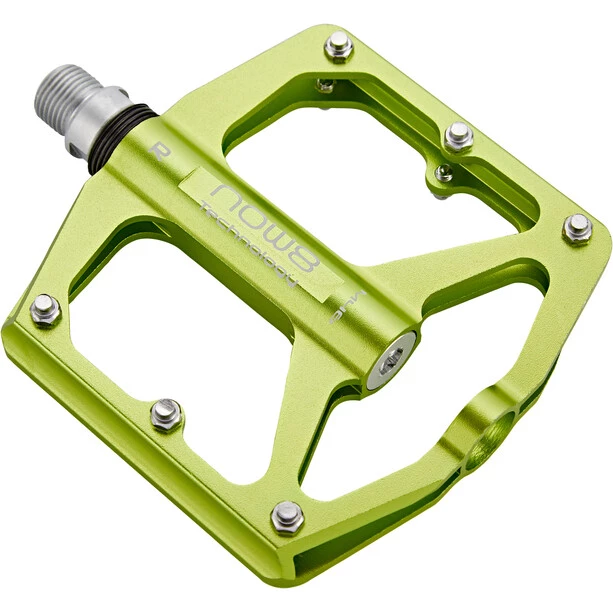 Le NOW8 Flatpedal M46 est disponible avec le logo NOW8 et un marquage pour la gauche ou la droite. Il pèse 342gr, a un axe CroMo et 6 broches.