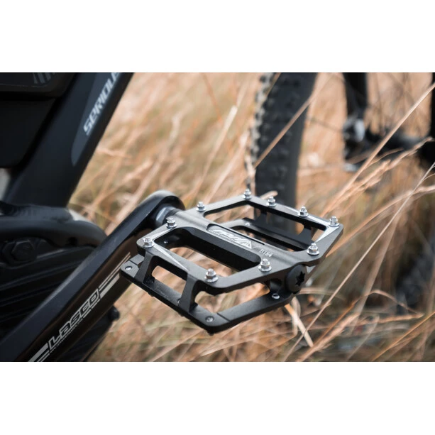 Les pédales DDD Pro de Red Cycling Products sont le modèle « poids-plume » parmi toutes les pédales de Freeride, Dirt, Dual de Downhill de la marque. En aluminium, elles offrent une bonne stabilité grâce à leur surface large. Elles se distinguent des autres modèles grâce à leur double pivot, leur faible poids, leur embout de graissage et leur picots anti-dérapages. Elles offrent donc une très bonne accroche même par temsp pluvieux.
