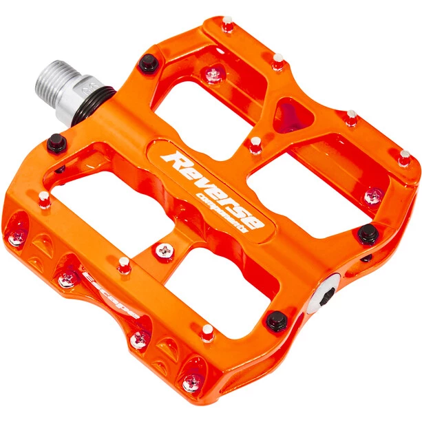 Une bonne position sur la pédale est aussi importante que la traction entre le pneu et le sol. Avec la pédale Reverse Escape, ce facteur décisif est fusionné avec beaucoup de style. L’espace debout de l’Escape est très généreusement conçu et offre également aux motards avec des pieds plus larges une tenue optimale. Un autre avantage de la pédale est l’axe interchangeable et la « fonction anti-torsion » contre le patinage non désiré de la pédale. Reverse Components propose la pédale d’Escape dans différentes couleurs pour s’adapter parfaitement à l’apparence de la moto.
