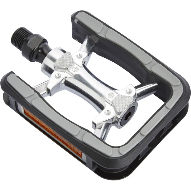 Pédale de confort à roulement industriel avec surface Kraton antidérapante, axe Cr-Mo pour une longue durée de vie et réflecteurs intégrés.
