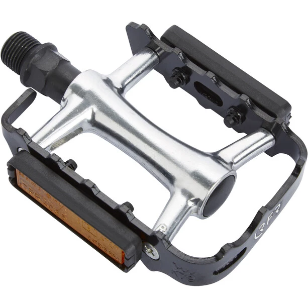 La pédale grippée en aluminium avec roulements de haute qualité est montée sur un axe Cro-Mo. Les réflecteurs sont inclus.