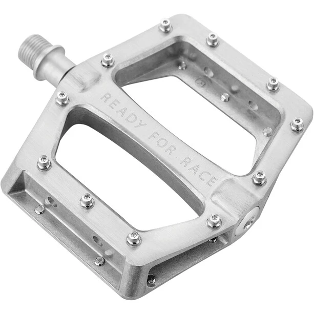 Les pédales plates légères sont en aluminium et sont équipées d’un axe Cr-Mo. Les pédales sont montées avec des roulements de haute qualité. Les goupilles antidérapantes sont interchangeables et offrent la meilleure adhérence sur le vélo.
