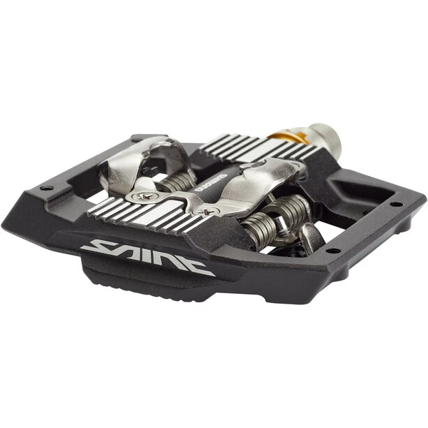 Cliquez dans les griffes de retenue robustes des pédales SPD de la série SAINT M820 pour les descentes difficiles. La conception de l’axe plus solide permet à ces pédales fines et robustes d’atteindre un nouveau niveau. En combinaison avec les chaussures SHIMANO de la série GR, elles offrent même un meilleur contrôle du vélo.