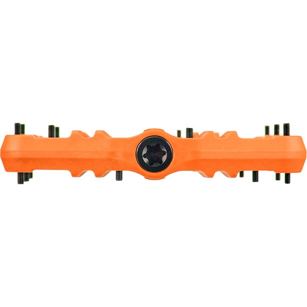 C’est avec fierté qu’ils présentent la nouvelle pédale plate Kamikaze PA. Le corps de pédale composite en polyamide renforcé de fibres de verre assure une résistance exceptionnelle pour un poids réduit. La grande surface d’appui (105x114mm) possède un profil préformé et 18 pins en acier extra longs. L’axe en chromoly, fabriqué en Allemagne, trempé thermochimiquement et donc résistant à la corrosion, assure, avec un palier lisse igus et deux roulements en acier à rouleaux, une rotation douce pendant une longue durée de vie.