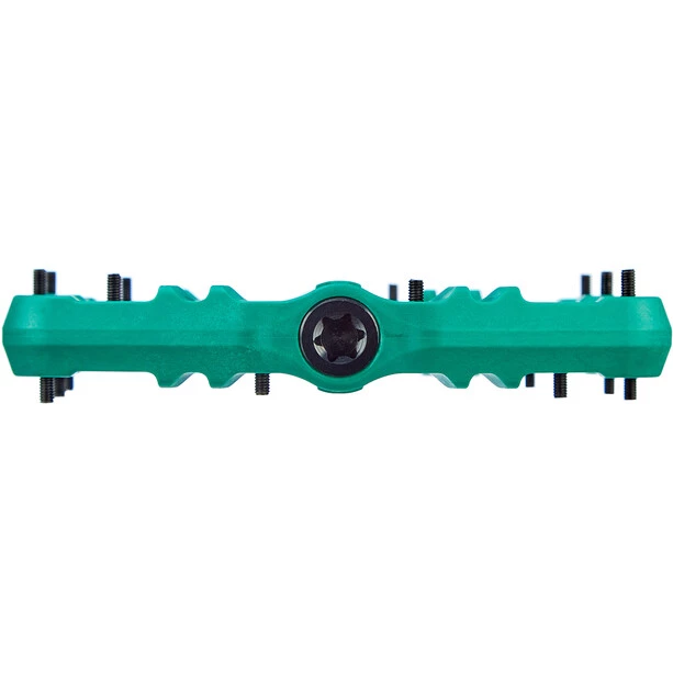C’est avec fierté qu’ils présentent la nouvelle pédale plate Kamikaze PA. Le corps de pédale composite en polyamide renforcé de fibres de verre assure une résistance exceptionnelle pour un poids réduit. La grande surface d’appui (105x114mm) possède un profil préformé et 18 pins en acier extra longs. L’axe en chromoly, fabriqué en Allemagne, trempé thermochimiquement et donc résistant à la corrosion, assure, avec un palier lisse igus et deux roulements en acier à rouleaux, une rotation douce pendant une longue durée de vie.