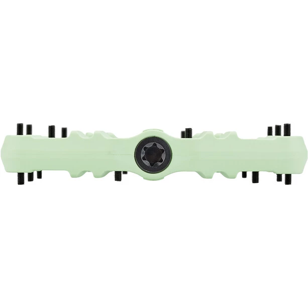 C’est avec fierté qu’ils présentent la nouvelle pédale plate Kamikaze PA. Le corps de pédale composite en polyamide renforcé de fibres de verre assure une résistance exceptionnelle pour un poids réduit. La grande surface d’appui (105x114mm) possède un profil préformé et 18 pins en acier extra longs. L’axe en chromoly, fabriqué en Allemagne, trempé thermochimiquement et donc résistant à la corrosion, assure, avec un palier lisse igus et deux roulements en acier à rouleaux, une rotation douce pendant une longue durée de vie.