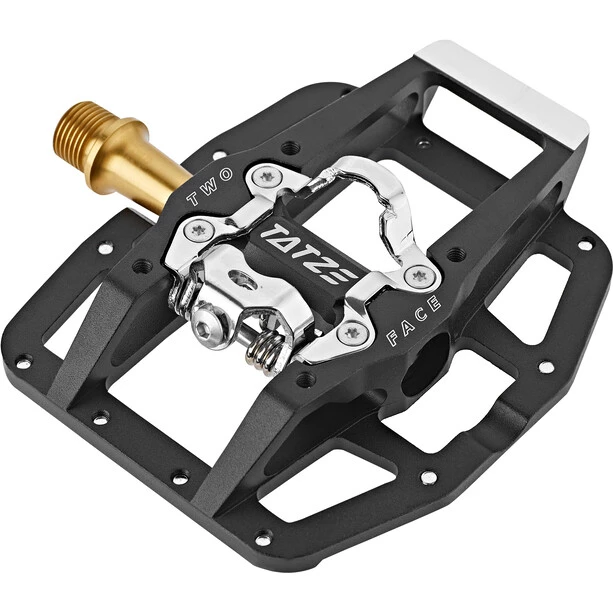 La pédale TWO-FACE avec axe en titane est à la fois une pédale plate extrêmement puissante et une pédale sans cliquet efficace. 14 codes PIN à élévation ciblée offrent une prise énorme, mais aussi du côté du clic, 6 codes PIN réglables en hauteur créent une connexion particulièrement saturée entre la pédale et la chaussure.